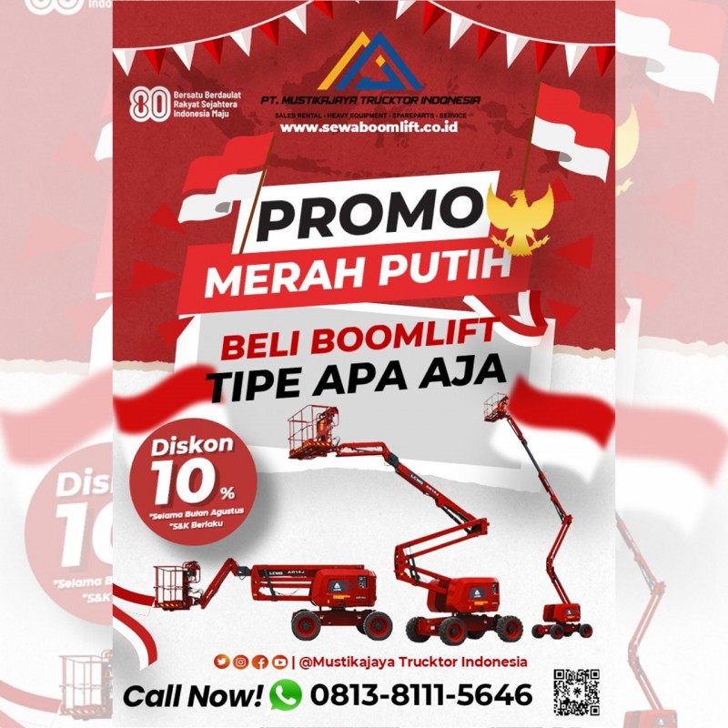 #PromoAgustus #Boomlift #MerahPutih #Diskon10 #MustikajayaTrucktorIndonesia #HeavyEquipment #SewaBoomlift #Kemerdekaan